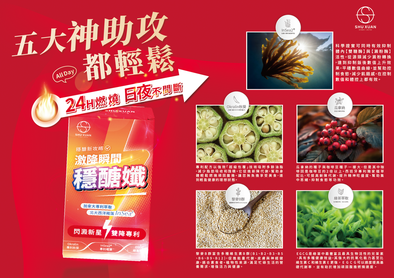 A:穩醣孅是一款以「飯前準備」為概念的飲食輔助產品,而五大神隊友,指的是它背後各司其職的五大成分設計。
