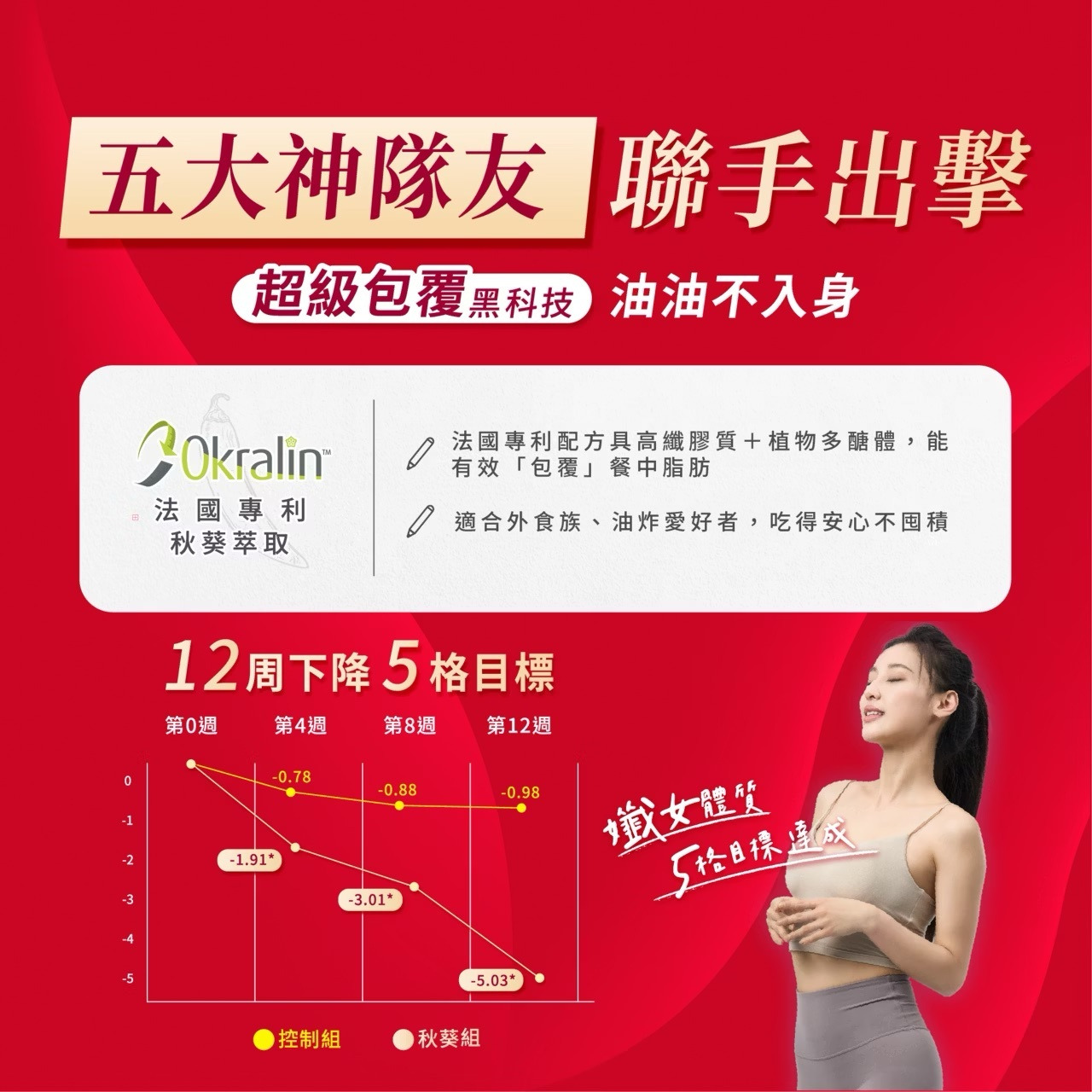 ✔ 加拿大專利 Insea2 + Okralin 秋葵萃取,幫助「阻斷」多餘吸收,不怕澱粉不怕油